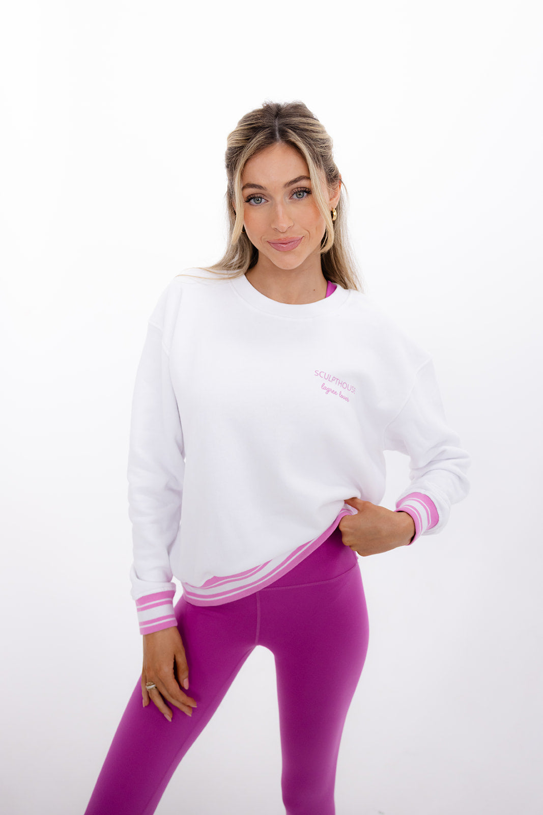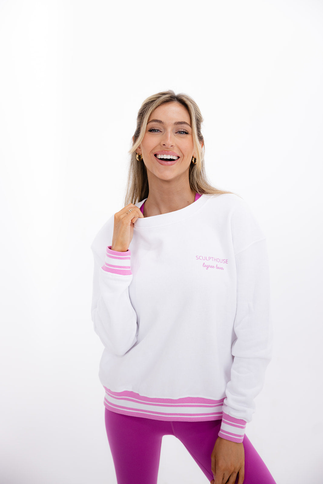 -Printed in the USA -Fleece crewneck pullover -Super cozy, slouchy, comfy + plush