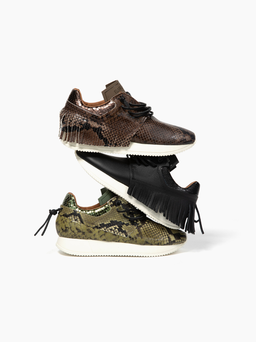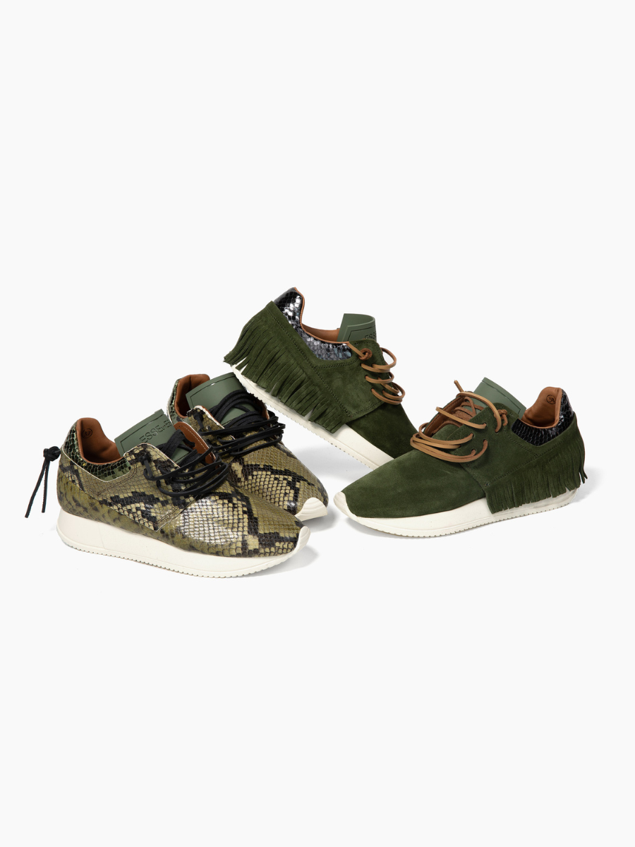 Esseutesse Leather Non Fringe Sneaker - Olive Python
